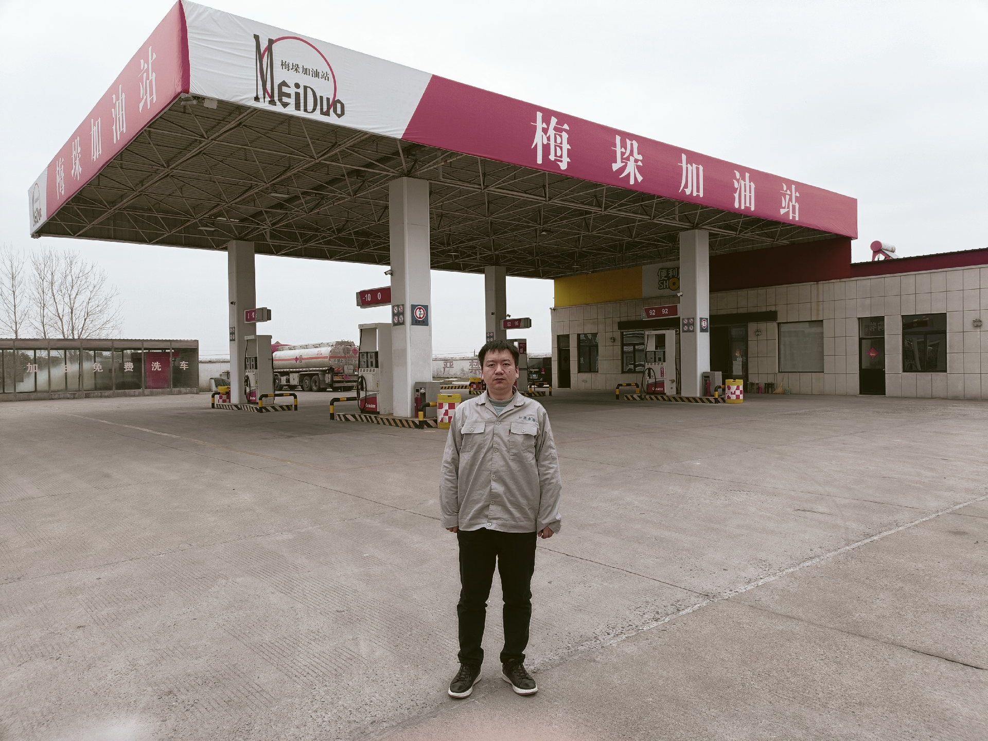 | 项目基本情况 | 泰州市梅垛加油站成立于2011年11月15日,企业性质为个人独资企业,地址位于泰州市姜堰区张甸镇梅垛村(九组),主要从事危险化学品汽油、柴油和一般经营项目润滑油等的零售业务以及汽车清洗服务。泰州市梅垛加油站现有从业人员6人,其中主要负责人为孔志刚,专职安全员为李越月,经泰州市应急管理局考核合格,均取得了考核合格证。泰州市梅垛加油站占地面积2000m2,共设置4只卧式SF双层埋地油罐(其中1只单罐容积为30m392#汽油储罐,1只单罐容积为30m395#汽油储罐,2只容积为30m3柴油储罐)和4台共计8枪税控加油机,加油站油罐总容积为120m3,实际折算总容积为90m3(柴油罐容积折半计入油罐总容积),根据《汽车加油加气加氢站技术标准》(GB50156-2021)表3.0.9条等级划分,泰州市梅垛加油站为三级加油站。 | |||